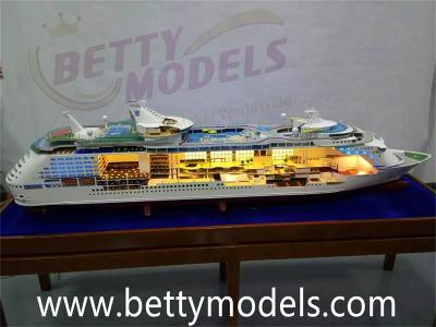 Mariner of the Seas is one of five Voyager-class cruise ships of Royal Caribbean International and can accommodate 4,252 passengers. Betty Models is proud to make this true museum quality cruise ship model to customer. In order to show cruise ship inside great design,we special cut away half side(starboard side)to make inside structure and furniture. From port side view,people can see the whole cruise ship model,from starboard view,people can see the inside structure and furniture.Add the lights effect make this model amazing. Betty Models is a custom model making factory, creating ship models more than 12 years for over 50 countries’ customers. Once you look at our model gallery,you'll see that we produce true museum quality models that you'll be proud to own and display. Cut away cruise ship model is a great idea to display both ship exteriors and interiors.And easy to show customers the ship design.If you want to custom your own special cut away cruise ship model,just Contact Us NOW!
